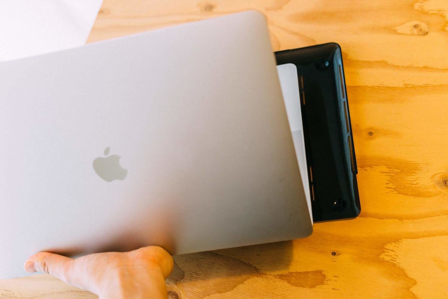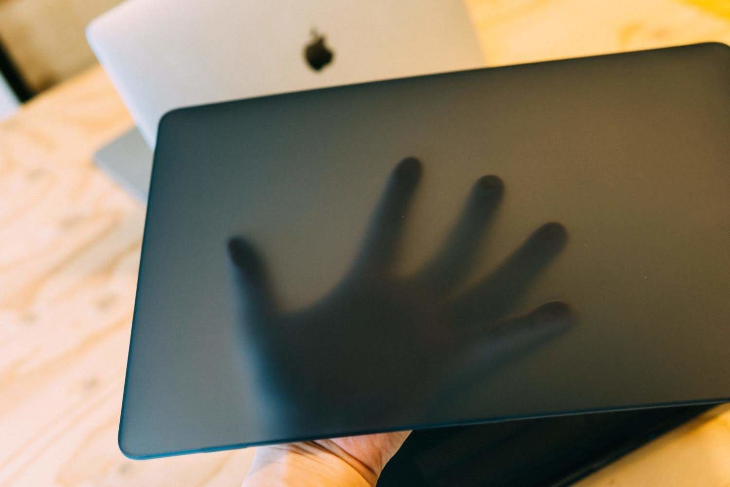 ケースの爪を引っ掛けるようにMacBookに設置します。パチっとハマるので外れません。むしろ外すのが大変なくらいピッタリはまります。