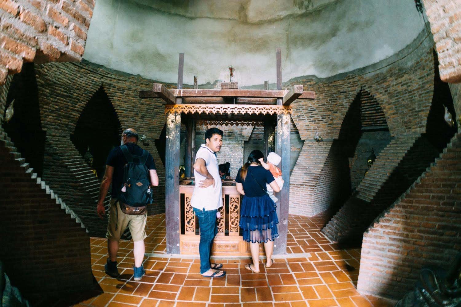 右側の仏塔はちょっと斜めになっていますが、これは2011年に発生した洪水によって傾いてしまったんですって。いま僕たちが歩いているレンガの歩道も洪水によって流されてしまったので、その後再建したものでした。