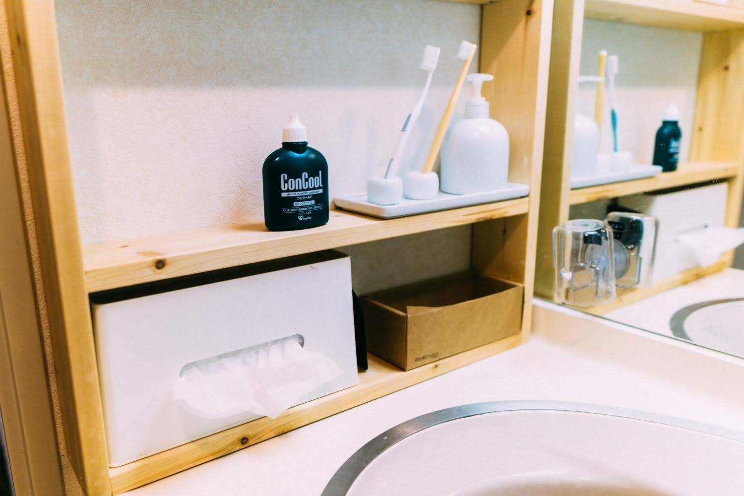洗面台に設置したワンバイフォー材で作った自作の棚。その工程は過去の記事を見ていただくことにして、今回のメインはミニゴミ箱です。