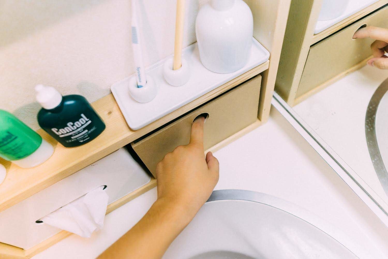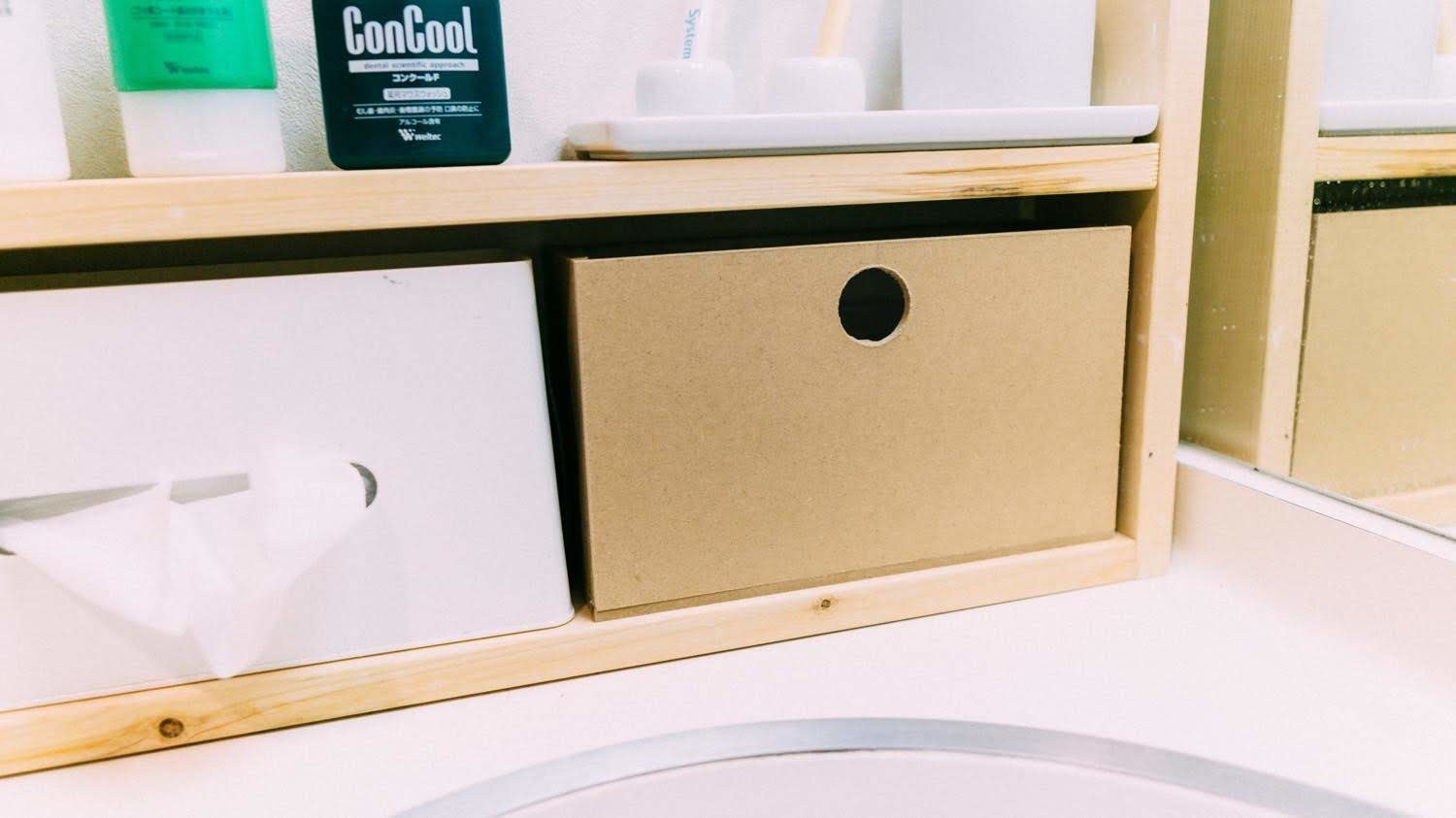 材料費100円で、洗面台横の自作棚にぴったりのゴミ箱を作りました!