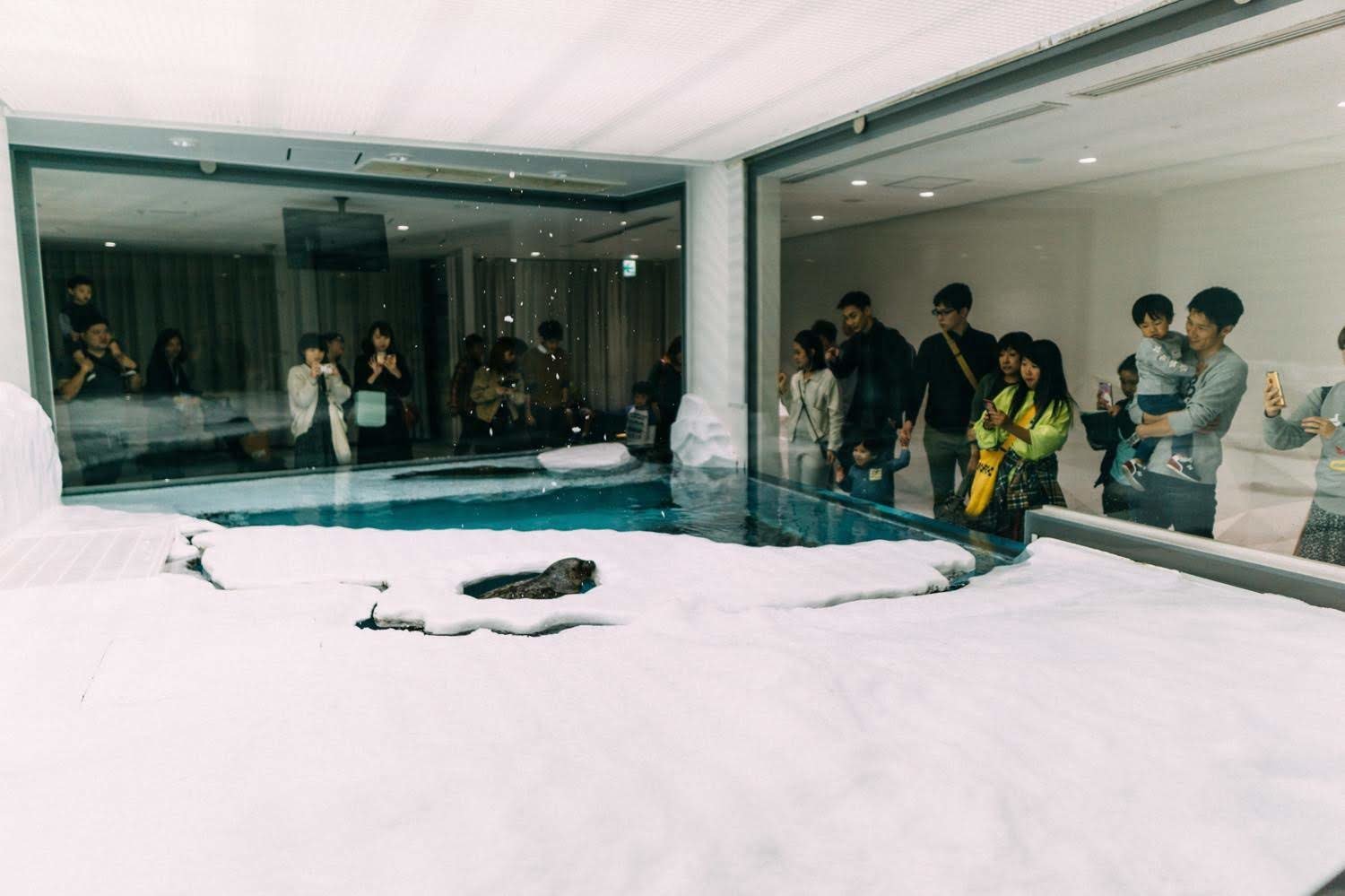 さっきのアザラシ水槽の下側にやってきました。水槽は一つだけど、上から下からと順路通り進んでいると何度もアザラシを観ることになります。